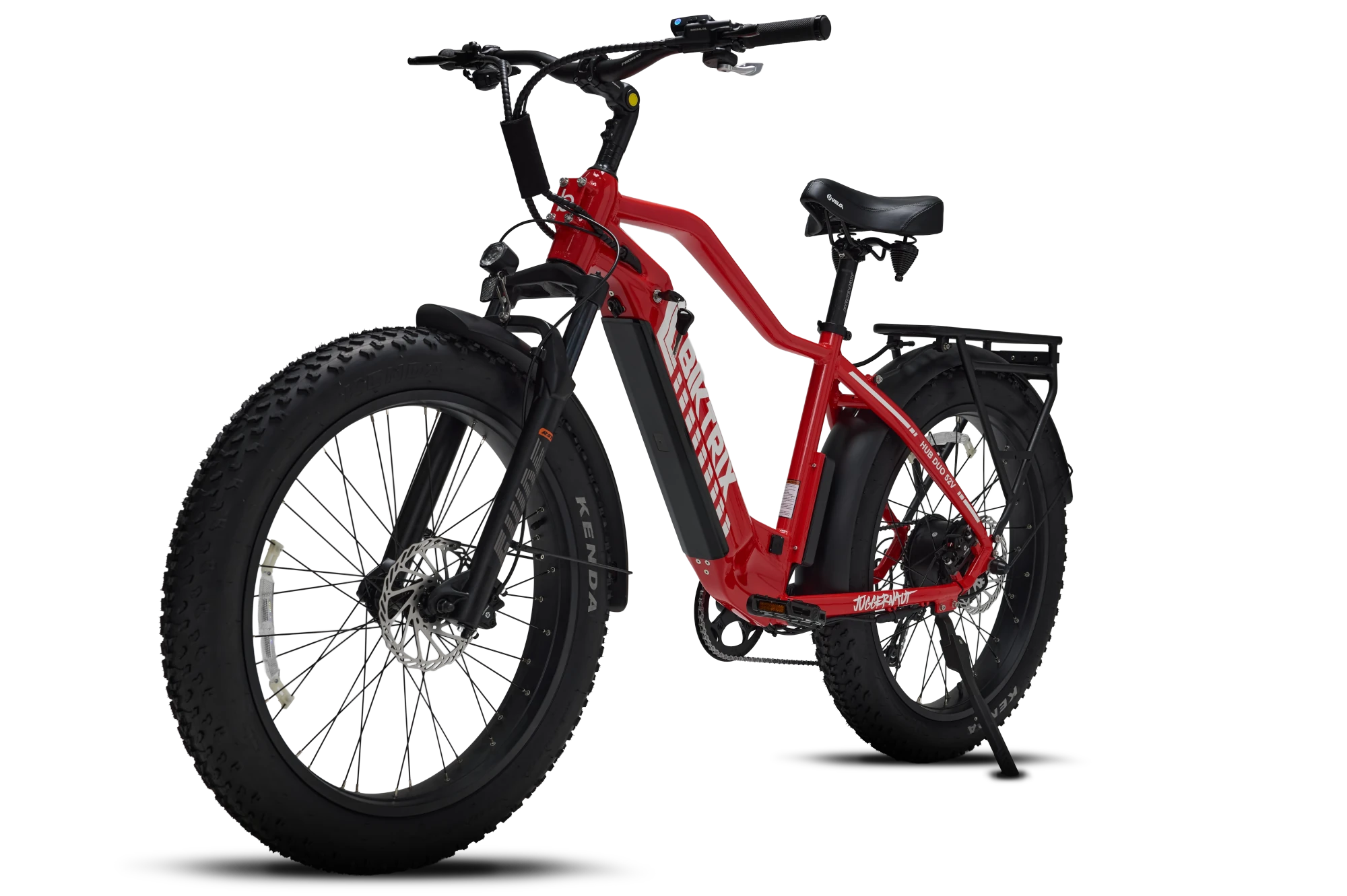 This bright LED Light is power by the bike’s battery and can be turned on and off with a button on the handlebar control pad.
